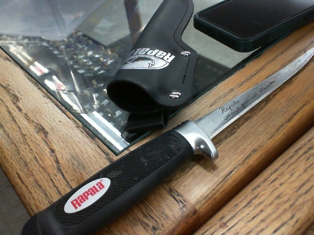 A welcome sight in fish cleaning houses all over the world, the Rapala® Soft Grip® Fillet Knife delivers the sharp precision of its famous flexible stainless steel blade and the comfort of a non-slip, soft-grip molded textured handle. The razor sharp blade has extra backbone on the lower end, for cutting through bone and skin, while the flexible tip handles the surgical detail work. Enlarged finger guard for a safe hold. Includes a black sheath with belt loop and a handheld single-stage sharpener for quick blade touch-ups.