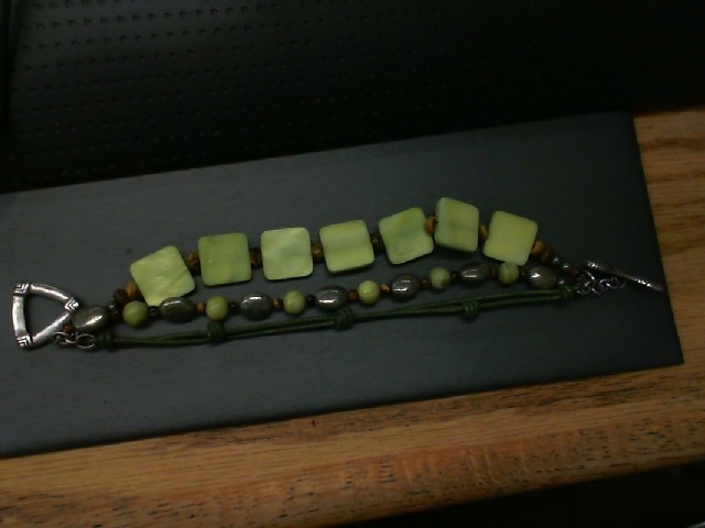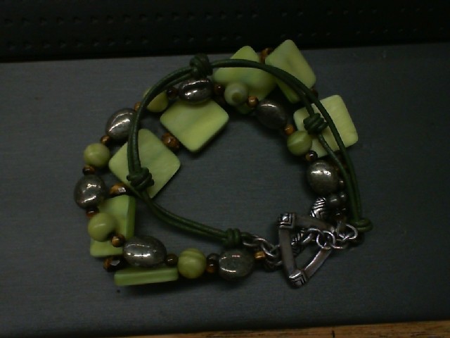 RETIRED silpada B1132 GREEN MOTHER OF PEARL GREEN LEATHER TIGER EYE AND PYRITE BRACELET Loc:SILVER CASE