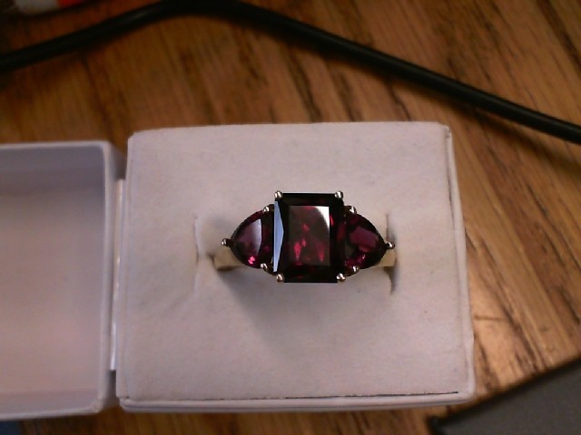 4.10gms Ring 14K YELLOW GOLD RHODOLITE GARNET RING yellow gold, 3 stones Loc:GOLD CASE