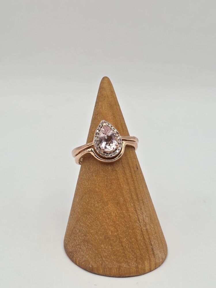 10k R/G RING W/ CLEAR CENTER STONE DIA CHIPS SURROUNDING SIZE 5 3g