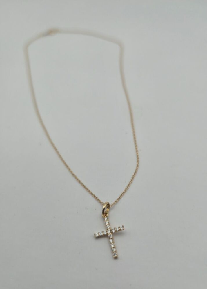 10K YELLOW GOLD CHILD NECKLACE WITH CROSS PENDANT 12"
