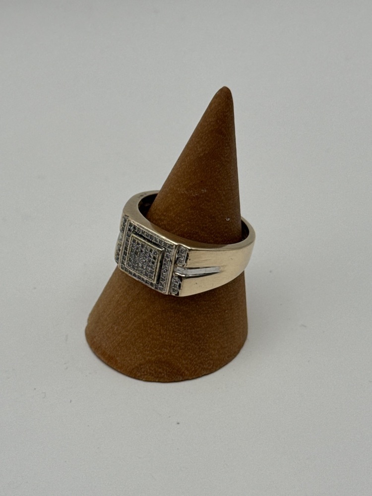 10K YELLOW GOLD RING WITH SQUARE FACE FILLED WITH DIA CHIPS 5.10G SIZE 10.5