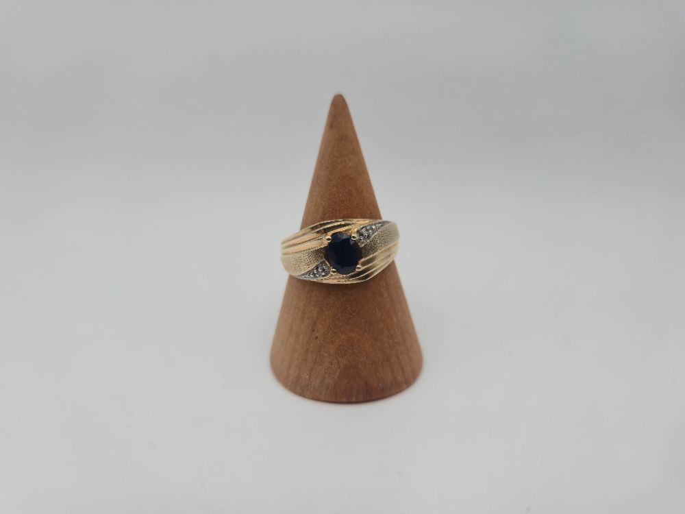 10K YELLOW GOLD RING WITH DARK BLUE OVAL STONE SIZE 9 1/2"