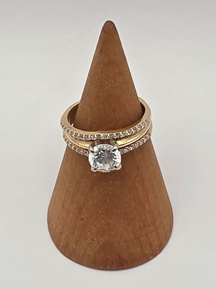 11143049 14k ring with big clear stone on top and chips on both sides SIZE 6-1/4