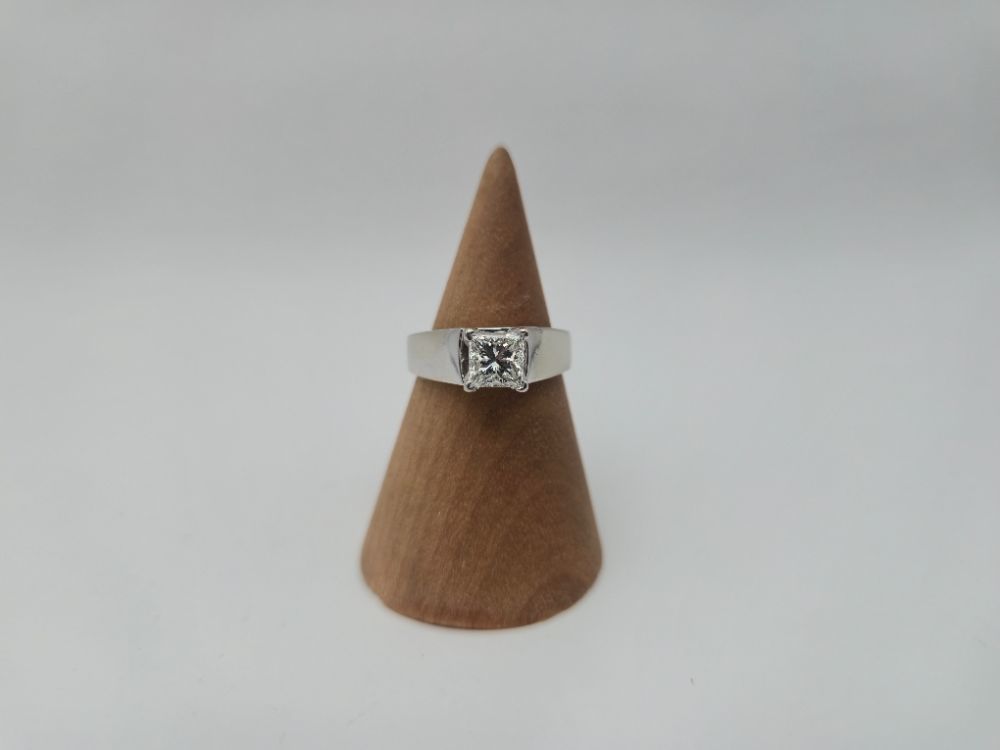 14K WHITE GOLD RING WITH .95 PRINCESS CENTER DIAMOND SIZE 7