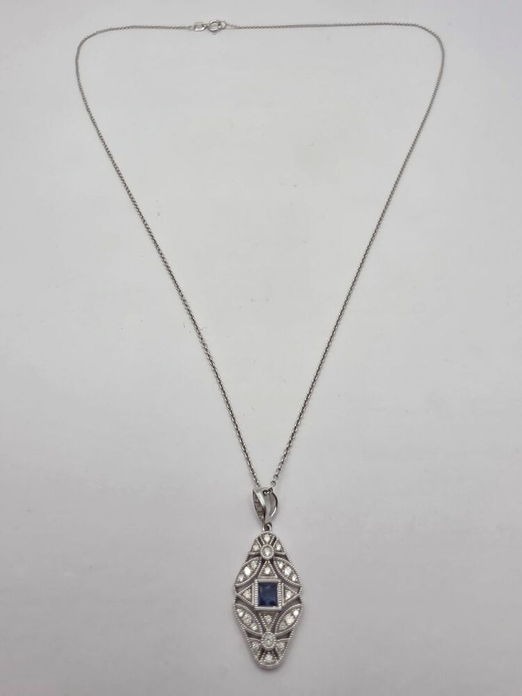 14K WHITE GOLD WITH BLUE STONE IN CENTER 18"