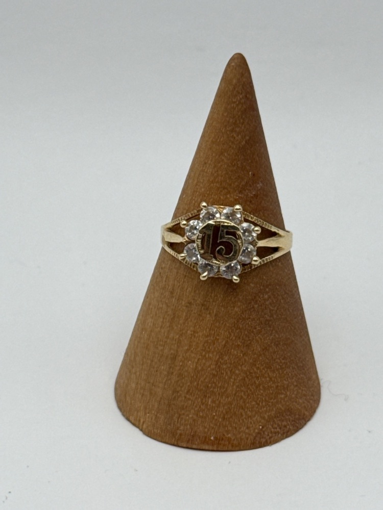 14K YELLOW GOLD 1.8G quinceanera ''15'' RING SIZE 8