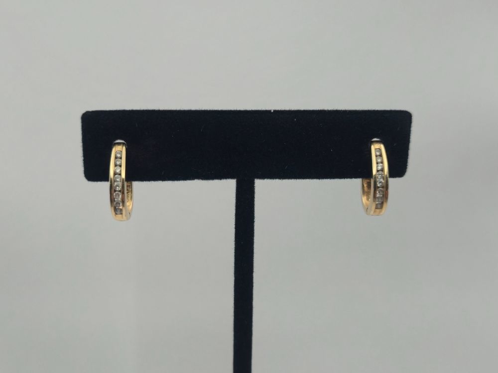 14K YELLOW GOLD EARRINGS WITH ROW OF SMALL DIAMONDS