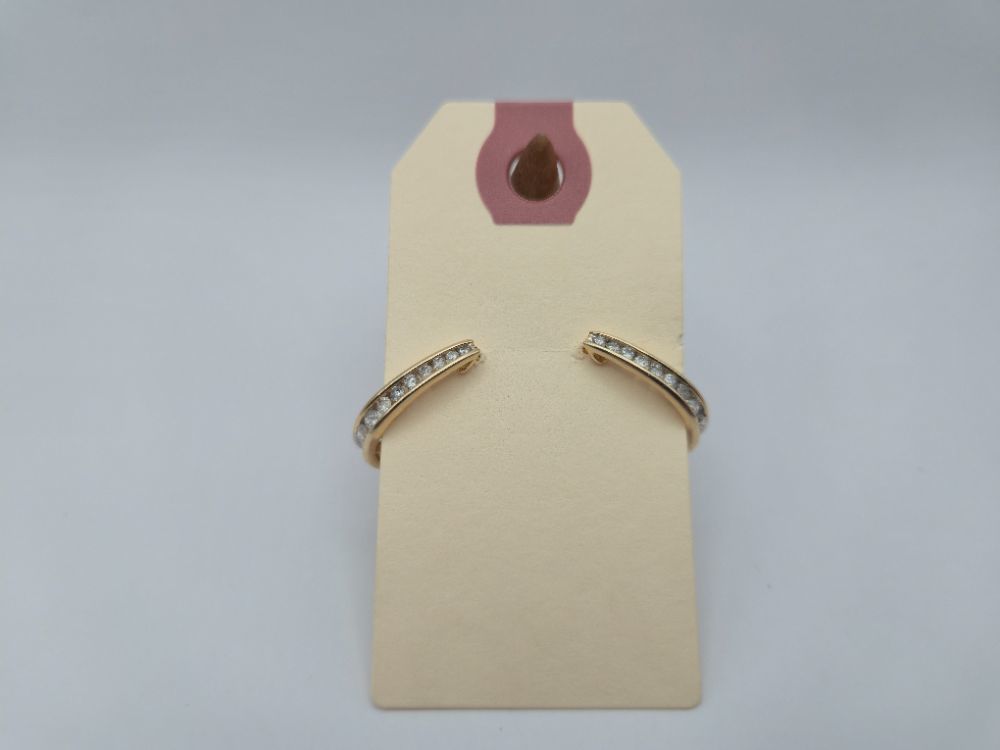 14K YELLOW GOLD EARRINGS WITH ROW OF SMALL DIAMONDS