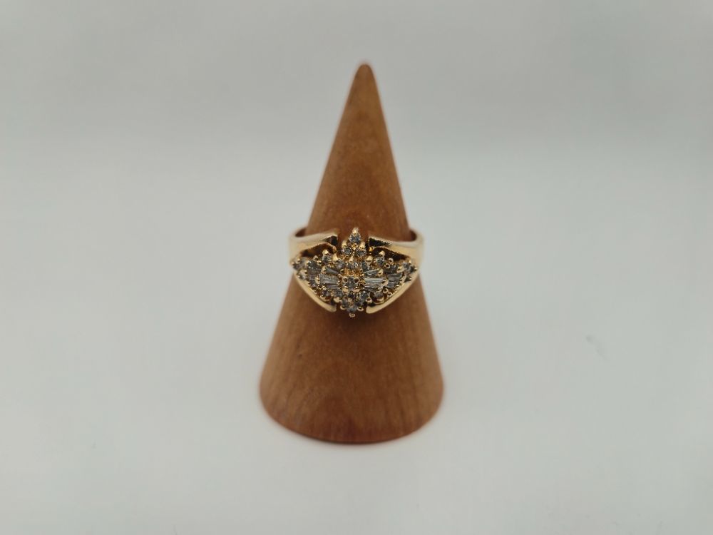 14K YELLOW GOLD RING WITH DIAMOND CHIPS AND BAGUETTES SIZE 8 1/2