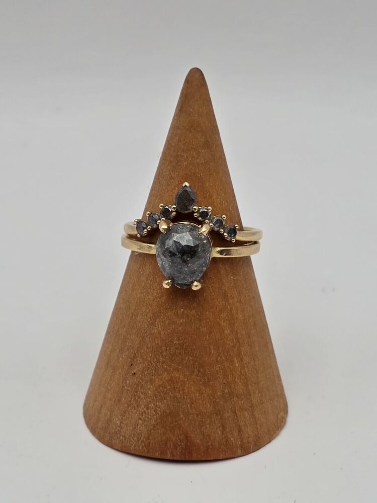 14K YELLOW GOLD RING SET WITH SALT AND PEPPER DIAMONDS 6-3/4