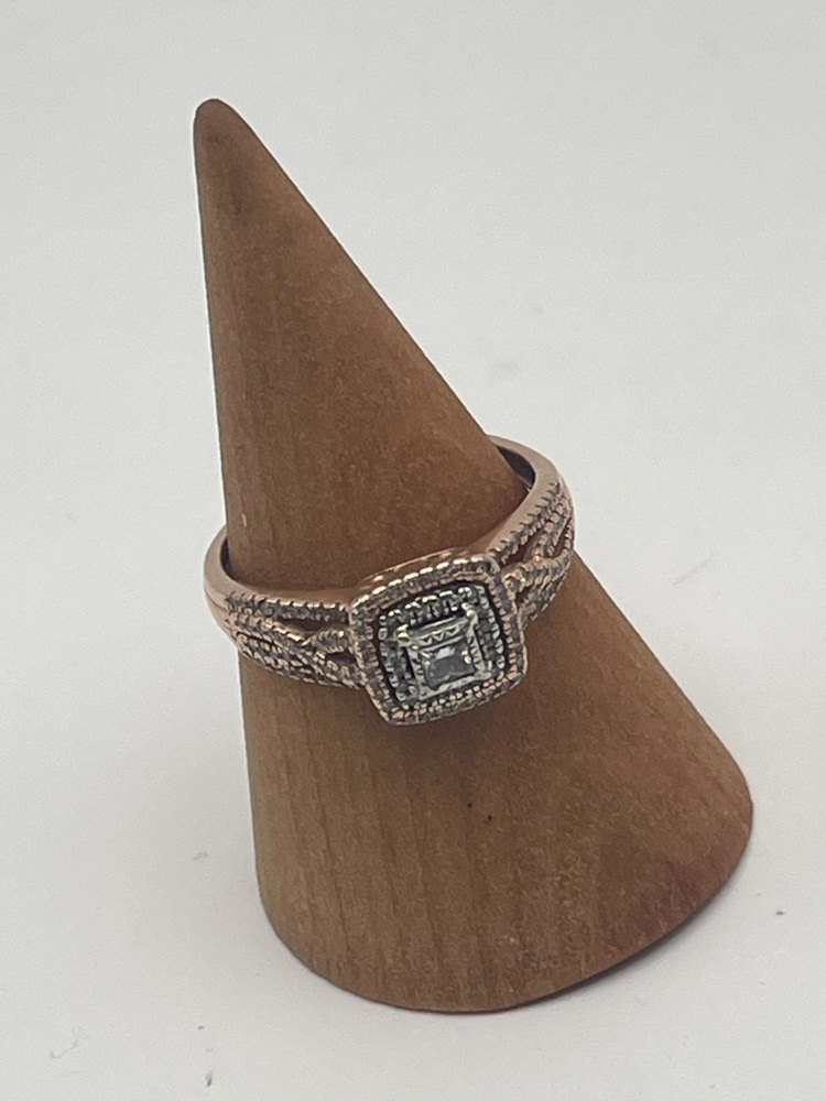 2.90gms Ring 10K ROSE GOLD RING WITH .10 PRINCESS CENTER DIAMOND SURROUNDED BY DIAMONDS