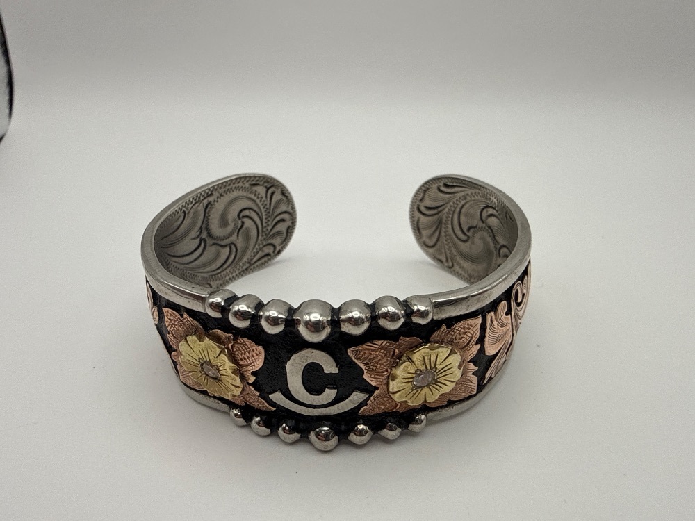 39.2g Bracelet SILVER AND GOLD BRACELET WITH 'C' ON FRONT