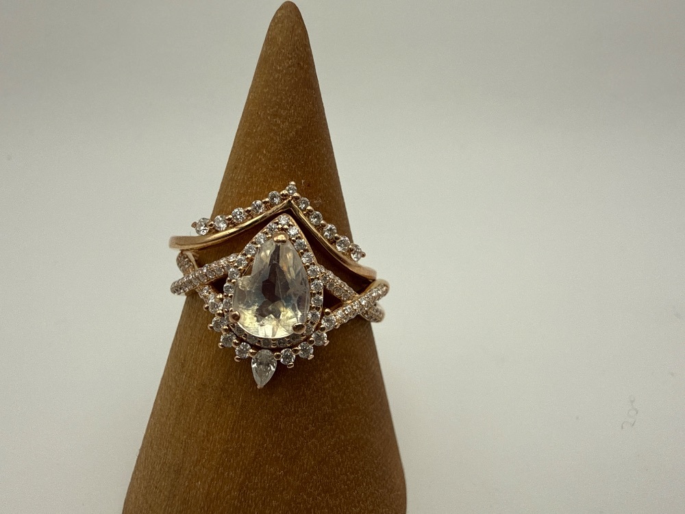 5.80gms Ring 18K YELLOW GOLD RING WITH CENTER TEARDROP STONE AND DIA CHIPS