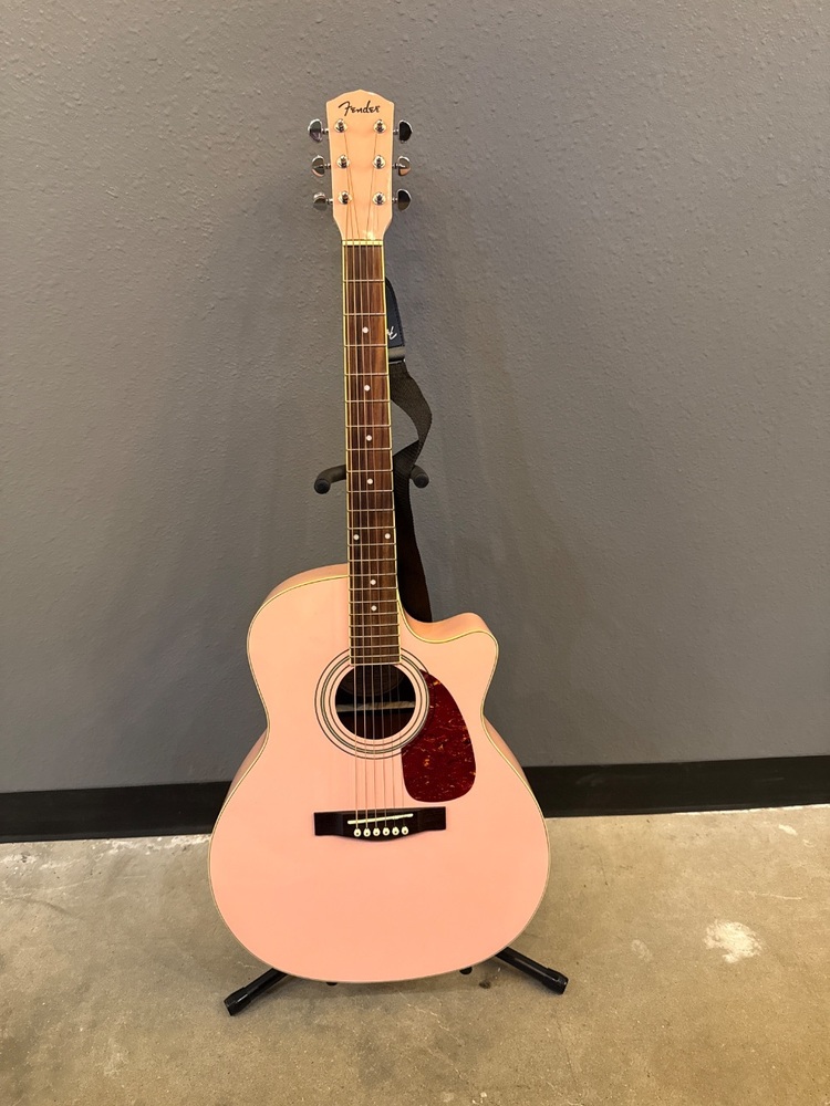 Fender DGA 1 Pink Acoustic Guitar with soft case and strap