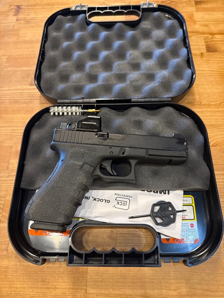 GLOCK 17 9MM SEMI AUTOMATIC PISTOL MOS WITH ONE MAGAZINE, SWAMPFOX GREEN DOT, AND GLOCK HARD CASE