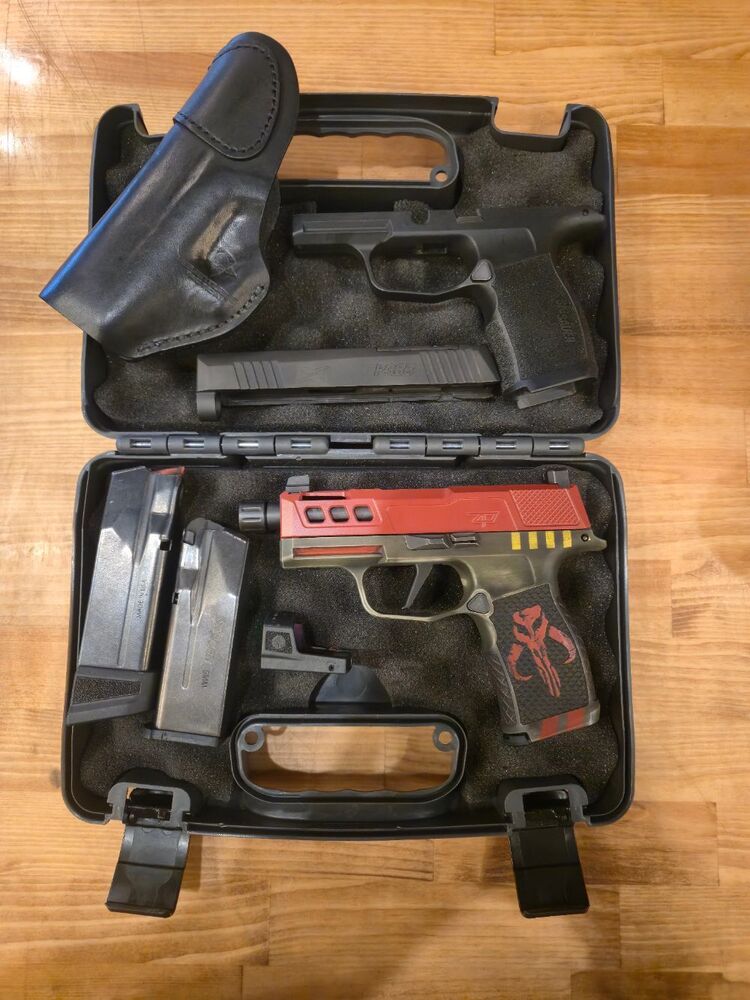 P365 MANDALORIAN Z.P PORTED SLIDE, TRUE THREADED BARREL, THREE MAGS, AND HOLSTER