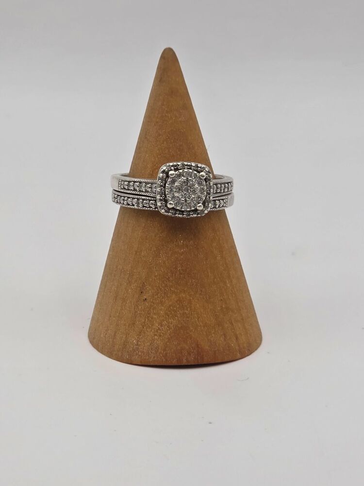 silver ring with dia chips on face and side size 7-1/4