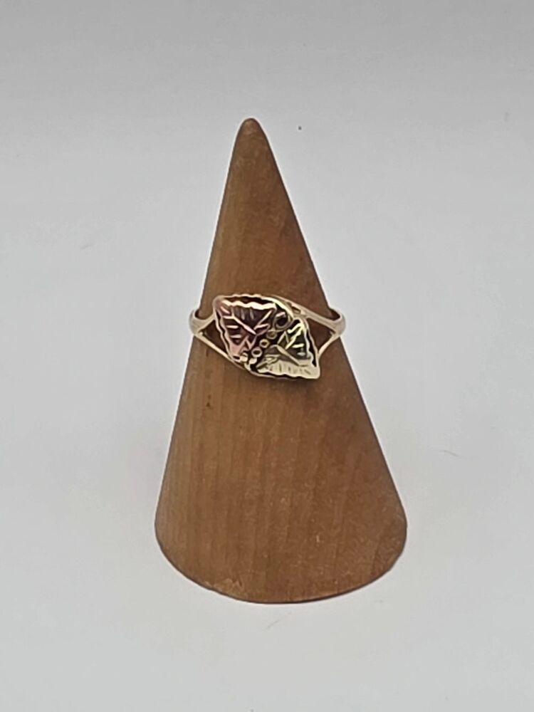 SIZE 6 10K BHG RING WITH TWO BIG LEAFS ON THE FACE