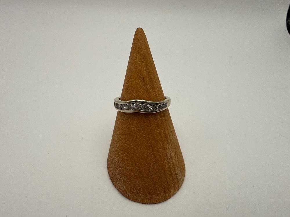 SIZE 6 2.10gms Ring 14K W/G RING W/ LINE OF DIAMONDS ACROSS FACE