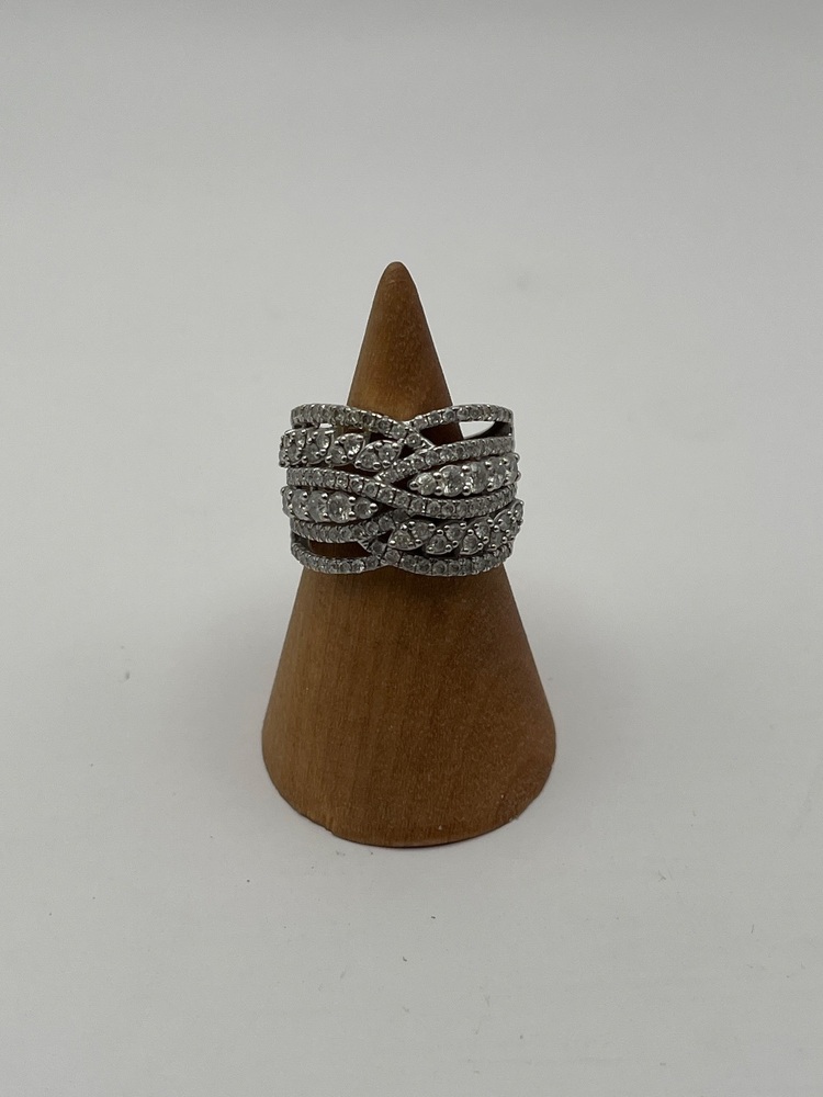Size 7 10kt WG Ring at 6.6g / Interlaced Diamonds