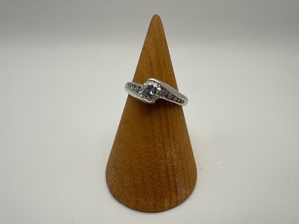 SIZE 7 14K W/G BAND W/ .35 CENTER DIAMOND AND SMALLER RUNNING DOWN SIDES