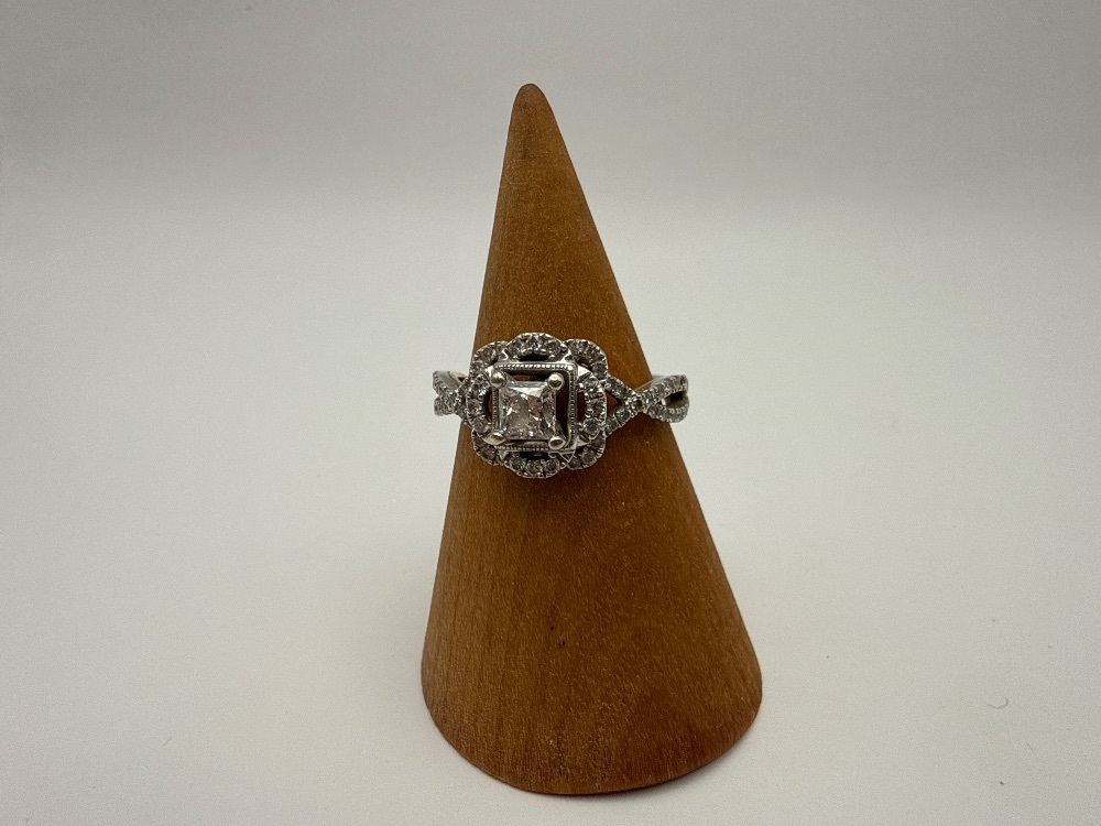size 7 4.20gm Solitare Ring 14K WEDING RING W/ .40 PRINCESS CUT CENTER AND MULTIPLE TINY DIAMONDS