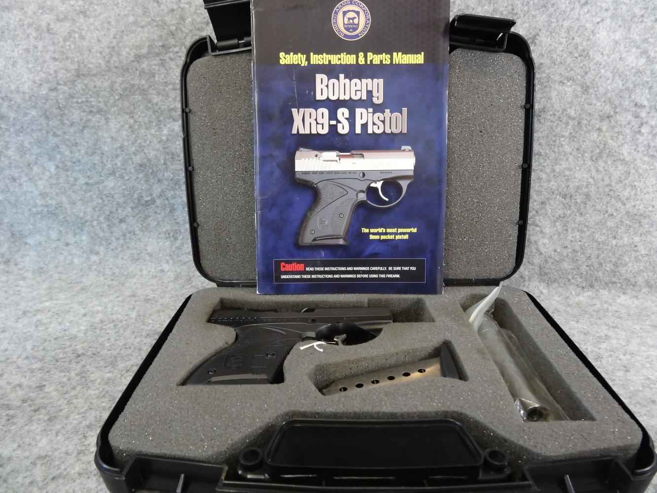 BOX; BOBERG ARMS; XR9-S; SN: S00929; 9MM; 2-7RD MAGS; XTRA BRL; MANUAL; HOLSTER;