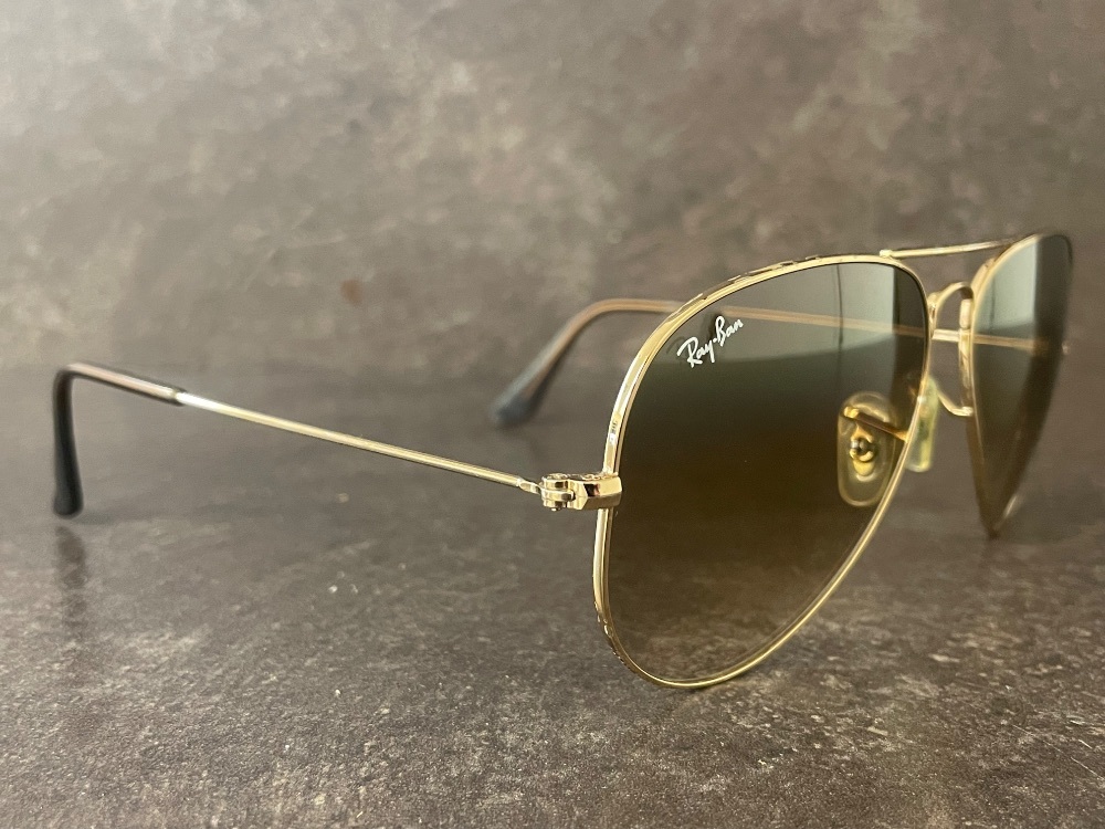 Elevate your look with this classic pair of Ray-Ban Aviator RB3025 sunglasses in the iconic 001/51 gold frame with brown gradient lenses. These timeless shades feature a 58mm lens width, 14mm bridge, and the signature Ray-Ban design loved worldwide.