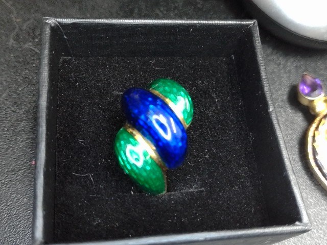 Gold 18kt 6.00g Ring Blue and Green enamel, vintage ring. Beautiful and unmarred