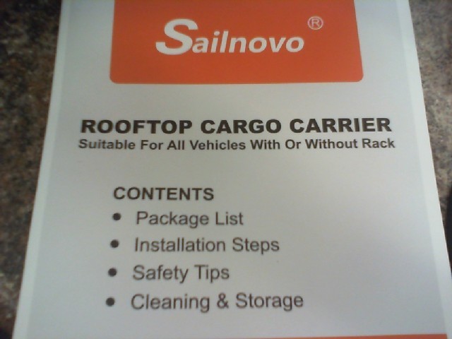 Sailnovo Rooftop Cargo Carrier. 20 cubic feet. Door hooks and adjustable straps keep it secured to the roof of your vehicle. Waterproof and extremely durable made of 1000D PVC tarpaulin.