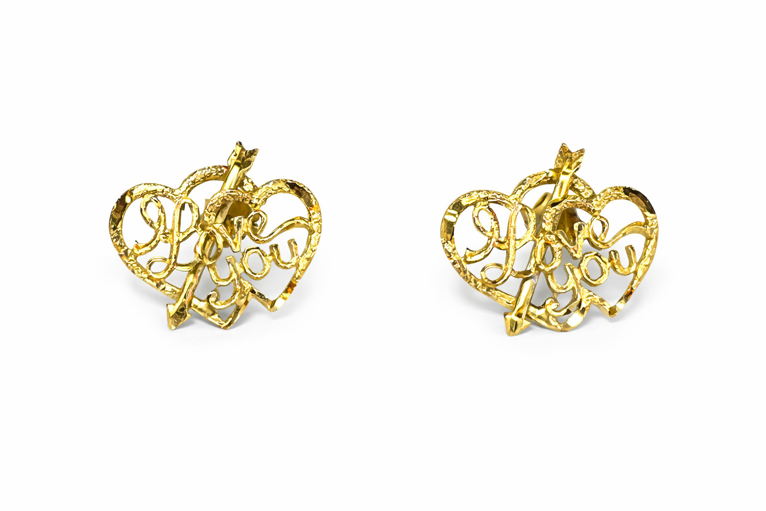 10K Yellow Gold "I love you" stud earrings