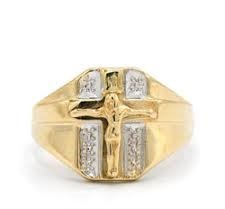 10K Yellow Gold Men's Crucifix Ring Size 10