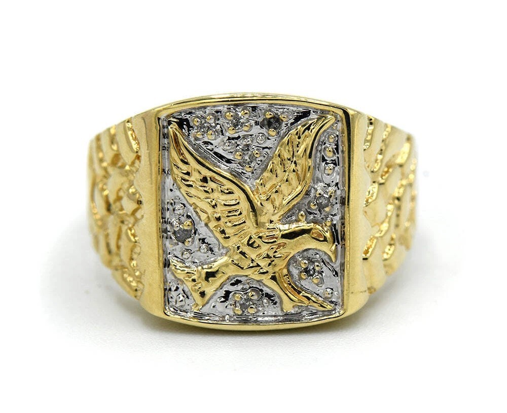 10K Yellow Gold Mens Eagle Ring