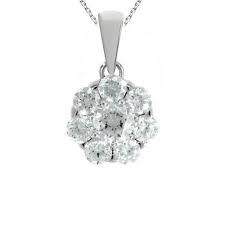 14K White Gold Cluster Pendant on Box Chain Necklace