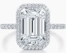 14K White Gold LAB Emerald Halo Diamond Ring