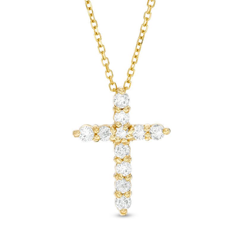 14K Yellow Gold .28CTW Diamond Cross Pendant 18" 1.30g