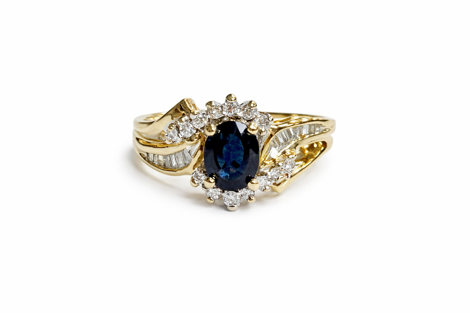 14K Yellow Gold Diamond Sapphire Ring 3.7gm Size 6