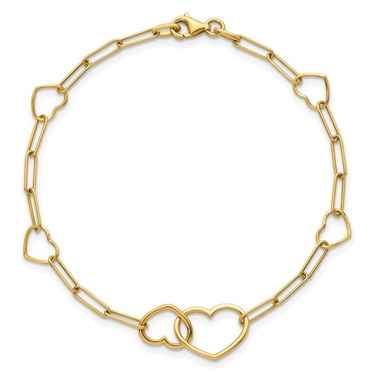 14K Yellow Gold Polished Heart Paper Clip Bracelet 2.83g