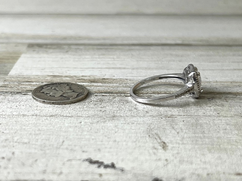 Immerse in the sublime elegance of a 1.42 Carat, SQ Emerald Cut, Lab Grown Diamond of E VS1 quality, certified by IGI. The enthralling jewel, nestled in a luxurious 10K White Gold Halo, embodies timeless beauty and unparalleled grace.