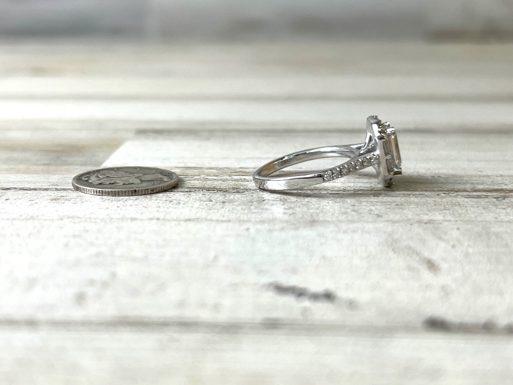 Behold elegance personified in our 1.89ctw Halo Engagement Ring, enveloping a majestic 1.50ct Emerald Cut Lab Diamond at its heart. Radiating unmatched brilliance and crafted with precision in 14K White Gold, this exquisite piece is a timeless pledge of love.