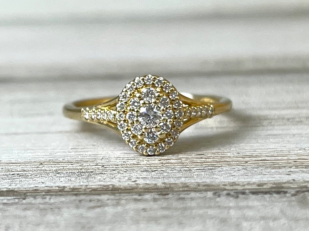Indulge in the radiant beauty of this 0.25cttw Certified Lab Diamond Cluster Ring. Expertly crafted in exquisite 10k Yellow Gold, this exclusive piece showcases timeless allure with a contemporary twist, offering elegance to any ensemble.