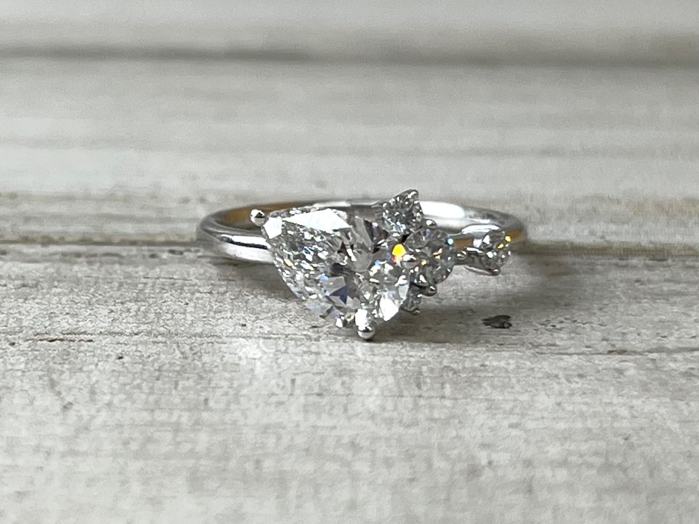 Sparkle in sophisticated brilliance with this 1.50TW, 1.25CT Pear Center Lab Diamond Engagement Ring. Crafted in luminous 14K white gold, this exquisite piece exudes a timeless charm.