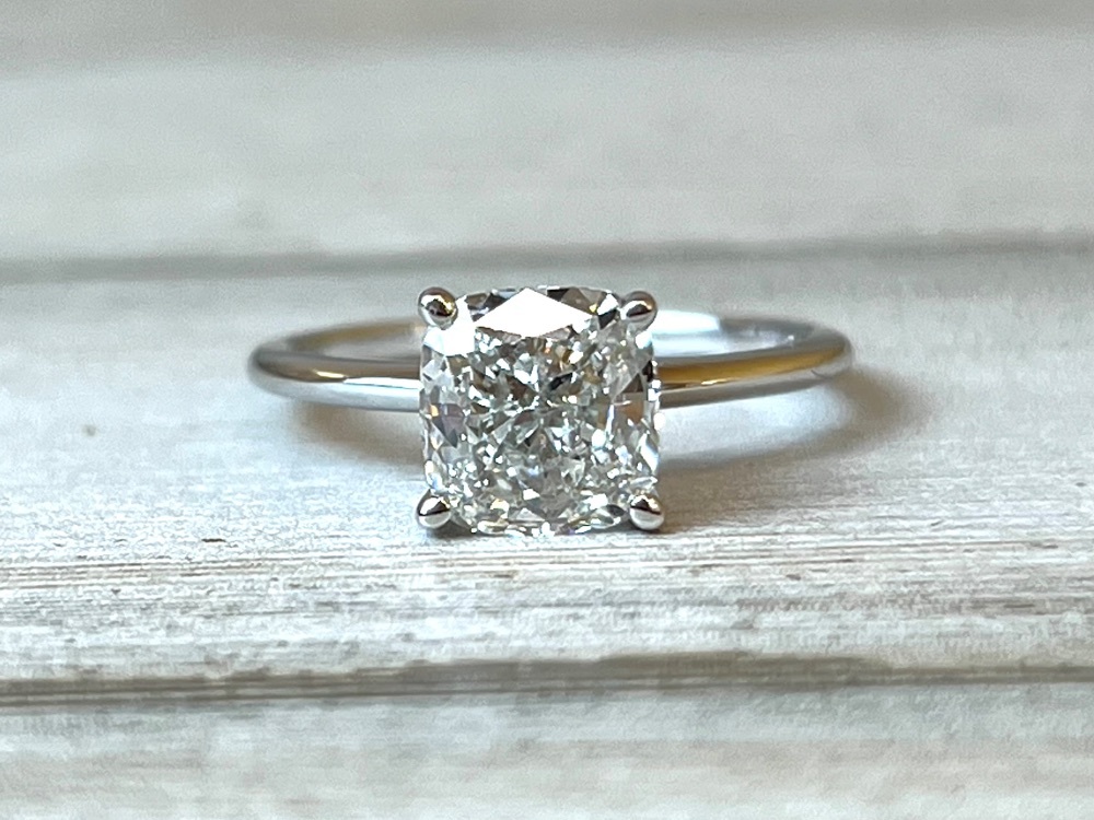 Unveiling a stunning charm, a 2ct Lab Diamond, Square Cushion Modified gem, set exquisitely in a 14-karat white gold - an epitome of elegance and timeless sophistication.