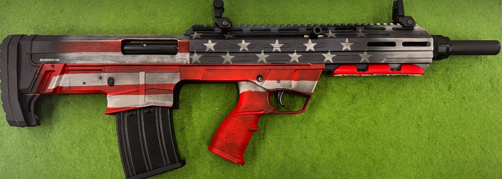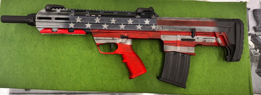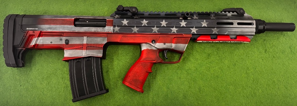 The Tokarev Shotgun 12ga Cal. TBP 12 is a high-powered firearm, proudly bearing the American flag design, symbolizing patriotism. Ideal for home-defense and hunting, it offers robust performance, exceptional reliability, and easy maintenance. Boasting an impressive firing power that enthusiasts appreciate.