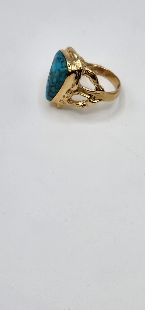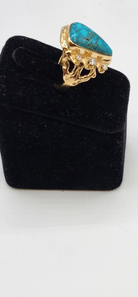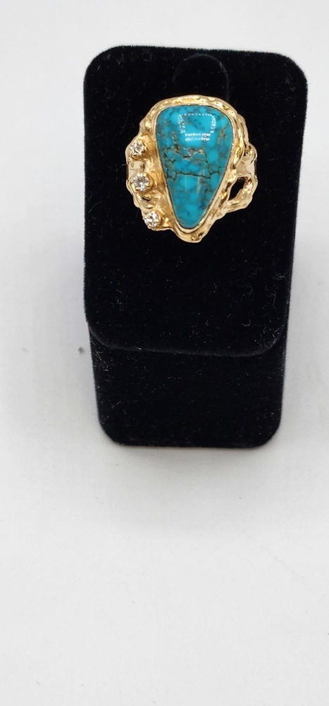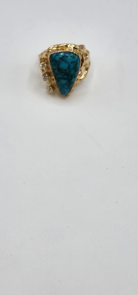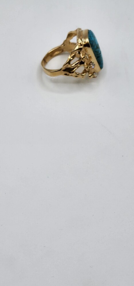 14K YG Diamond and Turquoise Ring 11.41g Size 8.5
