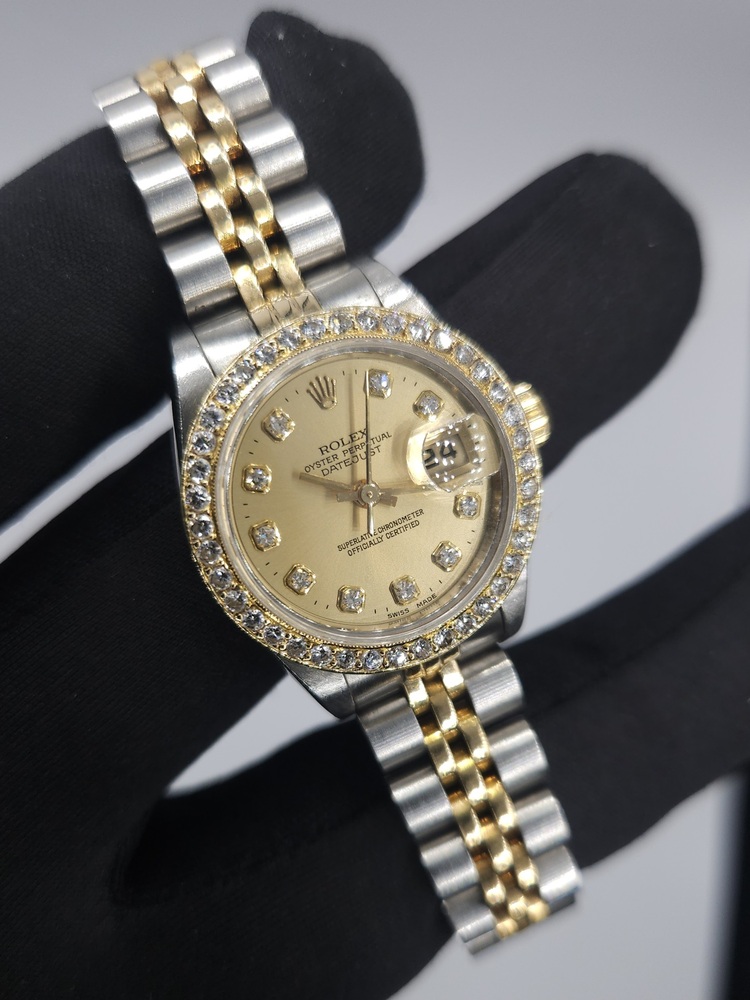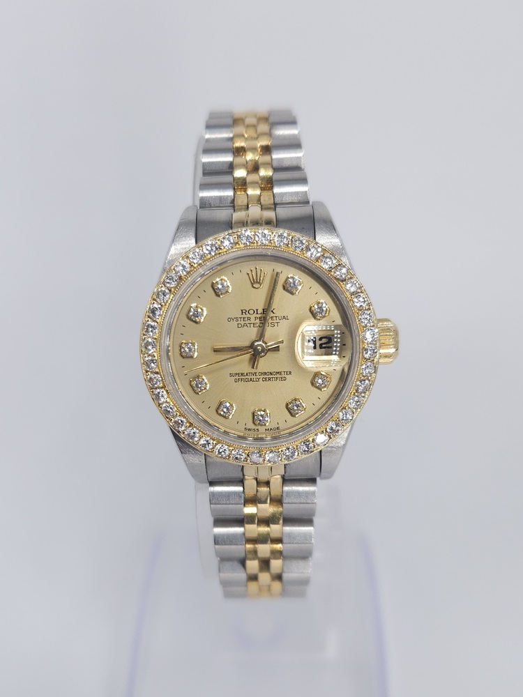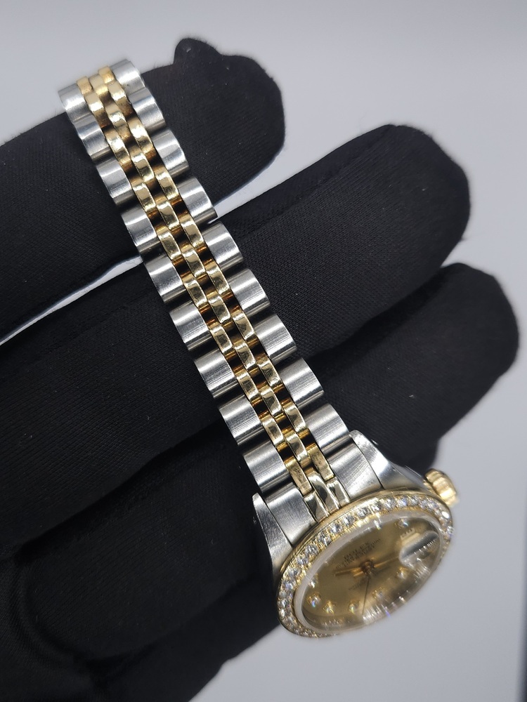 Watches Rolex Ladies DateJust Gold 69173 18K Two-Tone 26mm Jubilee Bracelet, Gold Diamond Bezel, Diamond Markers Loc: JE 18kt