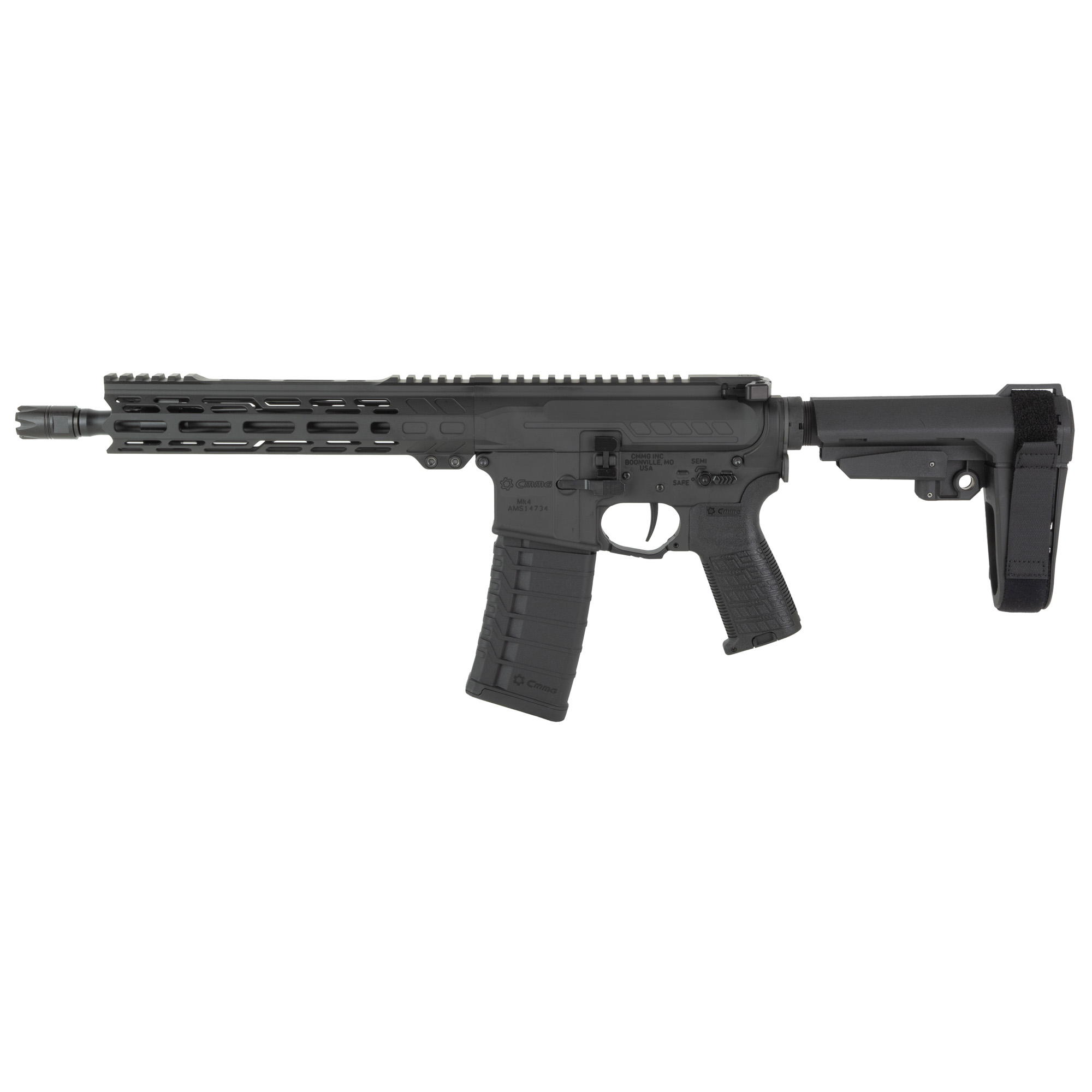CMMG Banshee MK4, Semi-automatic, AR Pistol, 556NATO, 10.5" Barrel, 1/2X28 Thread Pitch, Cerakote Finish, Armor Black, CMMG Pistol Grip, Pistol Stabilizing Brace, Ambidextrous Controls, 30 Rounds, 1 Magazine 55A420A-AB