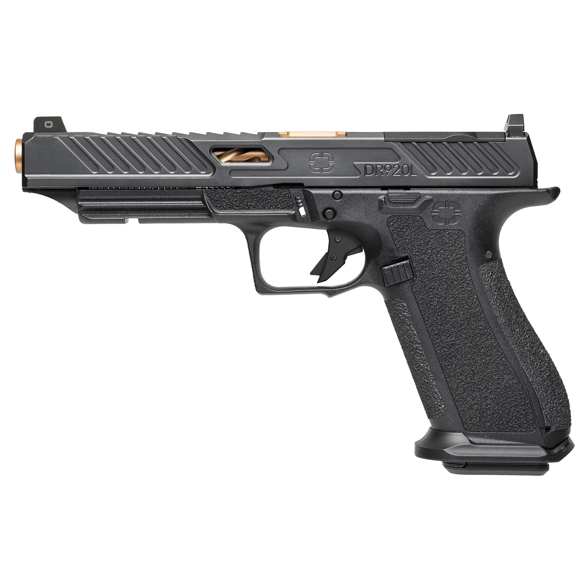 Shadow Systems DR920L Elite, Striker Fired, Semi-automatic, Polymer Frame Pistol, Full Size, 9MM, 5.31" Bronze Spiral and Fluted Barrel, Nitride Finish Slide, Black, Optics Ready, Flat Faced Trigger, Trigger Safety, Tritium Front Night Sight, 17 Rounds, 2 Magazines, Includes Optics Kit, Grip Kit, Attache Case, Shadow Systems Tool SS-2027
