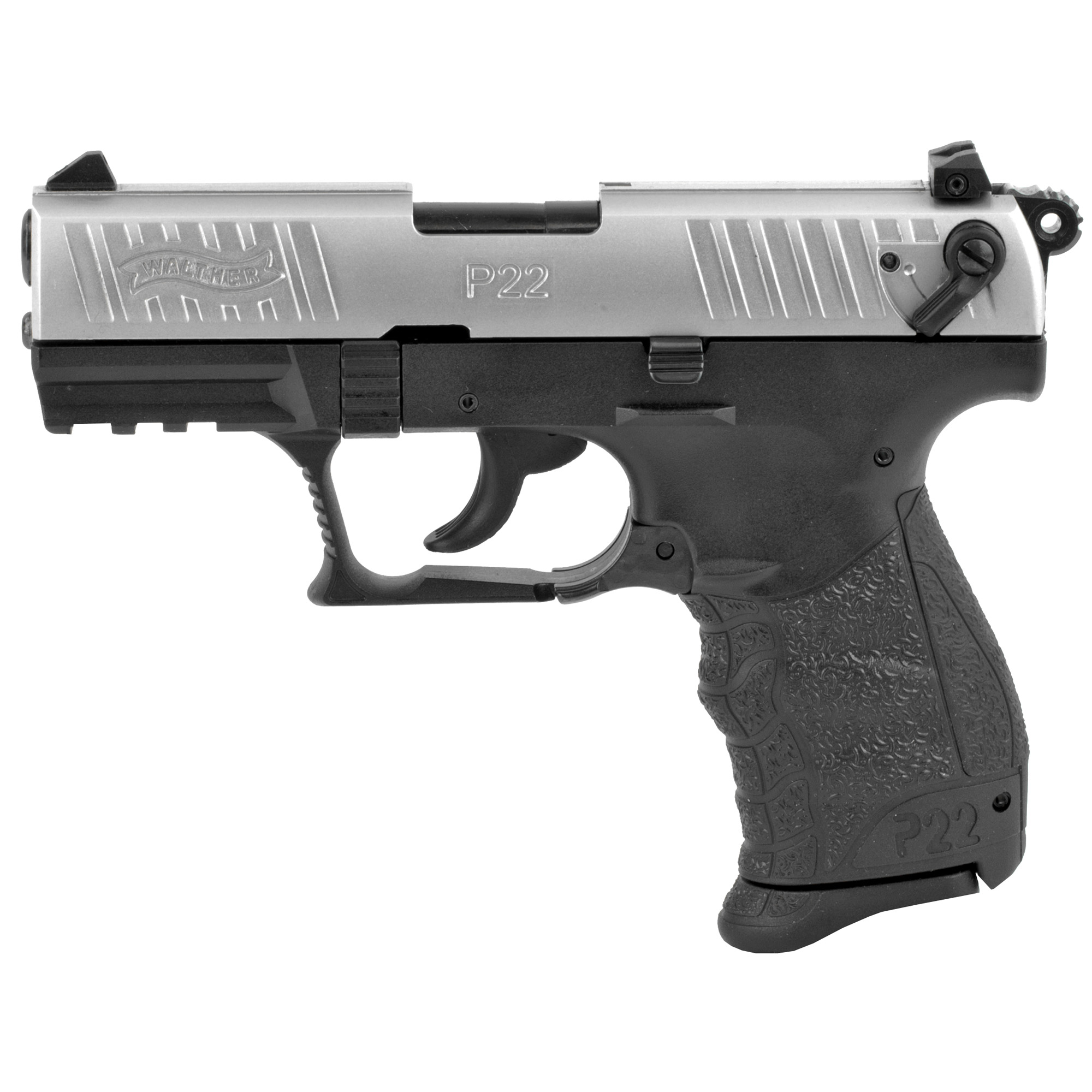 Walther P22Q, Double Action/Single Action, Semi-automatic, Polymer Frame Pistol, Compact, 22LR, 3.42" Barrel, Nickel Slide, 3 Dot Polymer Sights, 10 Rounds, 2 Magazines 5120725
